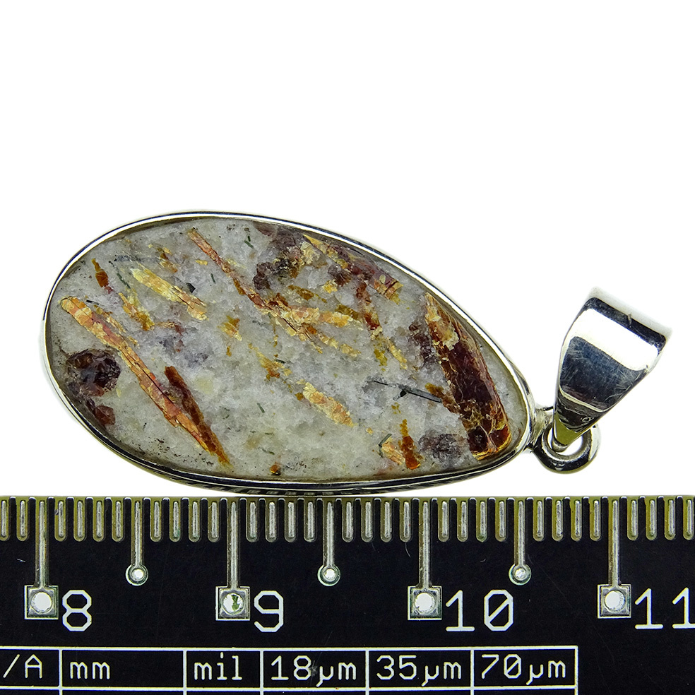 Astrophyllit wurde erstmals 1854 auf der abgelegenen Insel Låven in Norwegen entdeckt. Der Stein wurde seitdem an mehreren Stellen gefunden, jedoch nur an abgelegenen Orten in Kanada, Grönland und Russland. Dieser Stein in diesem Anhänger wurde in Grönland gefunden.