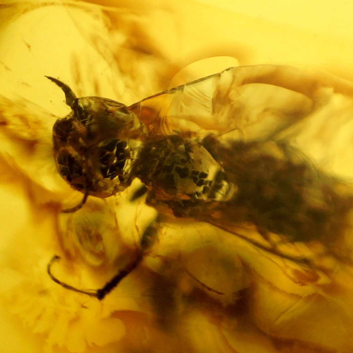Baltischer Bernstein mit eingeschlossenem Insekt, 44 Millionen Jahre alt.