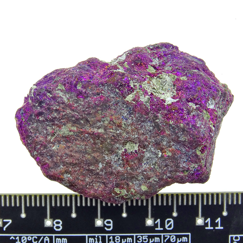 Durch die Oxidation von Eisen und Kupfer in diesem Mineral kann der Stein schöne blaue, violette oder rote Farben annehmen. Bornit wird wegen seines Farbspiels auch als "Pauwenerts" bezeichnet. Im Gegensatz zu einigen Berichten ist Bornite absolut nicht radioaktiv! Bornit kann beim Erhitzen magnetisch gemacht werden.