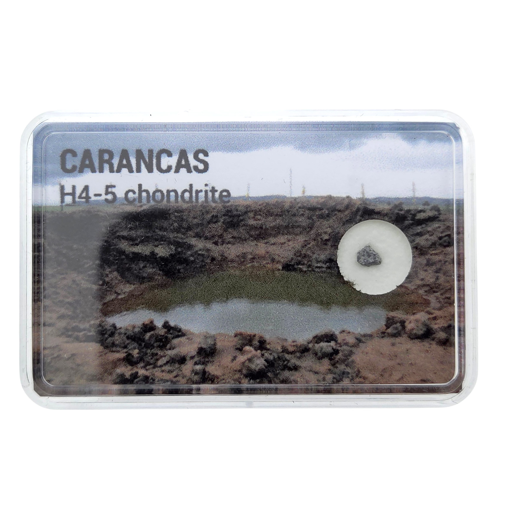 Der Meteorit von Carancas ist ein H4-5-Chondrit, der am 15. September 2007 in der Nähe von Carancas in der Region Puno in Peru, unweit des Titicacasees, einschlug. Weltberühmt wurde er durch den markanten Krater, der einen Durchmesser von etwa 11 bis 14 Metern hinterließ. Dies ist besonders bemerkenswert, da Steinmeteoriten dieser Art normalerweise hoch in der Atmosphäre zerbrechen und keinen ausgeprägten Einschlagkrater bilden. Carancas zeigte also, dass es auch anders kommen kann. Anwohner beobachteten einen großen Feuerball, und später wurden kleine Fragmente rund um den Krater gefunden.