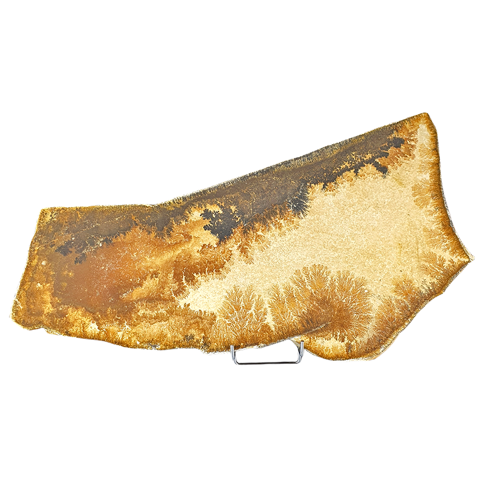 Dendriten findet man oft in porösem Kalkstein, wo er sich durch Spalten und Hohlräume vorgearbeitet hat. Aber auch in Achat und Opal sehen wir die schönsten Dendritenformen, die während des Wachstums entstanden sind.
