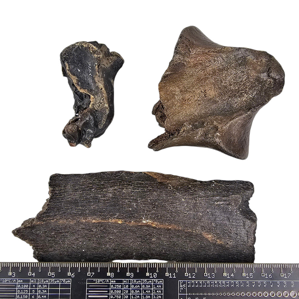 Dieses Set besteht aus drei Knochen verschiedener Säugetiere, die während der Eiszeit in der niederländischen Landschaft lebten. Sie stammen aus einer alten Sammlung. Auf einigen Knochen ist noch ein Code zu finden; leider ist die dazugehörige Liste mit Informationen verloren gegangen. Wir haben die Codes belassen, für den Fall, dass sie eines Tages wieder auftaucht.