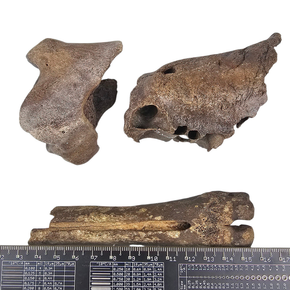 Dieses Set besteht aus drei Knochen verschiedener Säugetiere, die während der Eiszeit in der niederländischen Landschaft lebten. Sie stammen aus einer alten Sammlung. Auf einigen Knochen ist noch ein Code zu finden; leider ist die dazugehörige Liste mit Informationen verloren gegangen. Wir haben die Codes belassen, für den Fall, dass sie eines Tages wieder auftaucht.