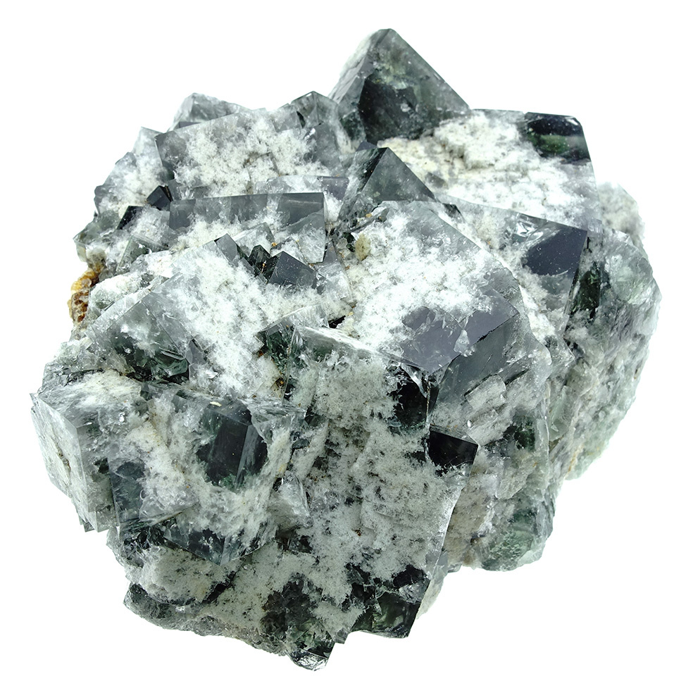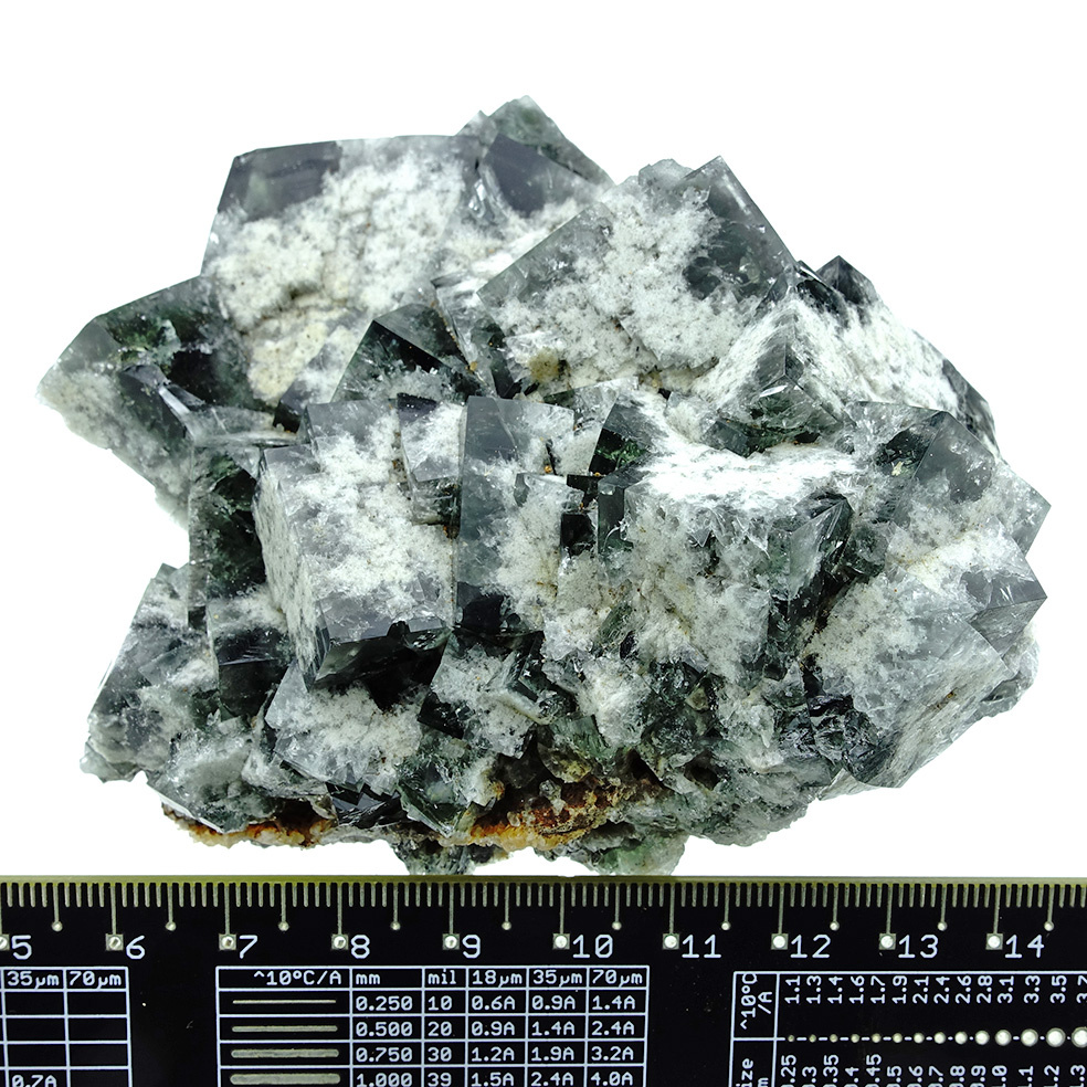 Wunderschöner Fluorit aus der 'Supernova'-Pocket in der Diana Marian Mine in Co. Durham, England. Dieser Fluorit zeichnet sich durch dunkelgrüne mit weißen Fluoritkristallen aus, die dem Ganzen ein astronomisches Aussehen verleihen. Spektakulär ist die Farbveränderung im Tageslicht: Diese Kristalle wechseln komplett von dunkelgrün zu tiefem Lila, sogar bei sehr wenig Licht! Ein Bild sowohl im Tageslicht als auch im Kunstlicht!