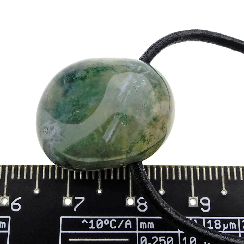 Achat hat medizinische Eigenschaften wie Schutz während der Schwangerschaft gegen Kopfschmerzen, Hauterkrankungen und Gleichgewichtsstörungen. Achat ist auch ein erdender, stabilisierender und schützender Stein. Innerer Frieden wird für eine ruhige und nüchterne Haltung gefördert. Moosachat gibt eine weiche Energie ab und ist sehr gut geeignet, um sich von einer Krankheit zu erholen oder nach einer Zeit innerer Turbulenzen.