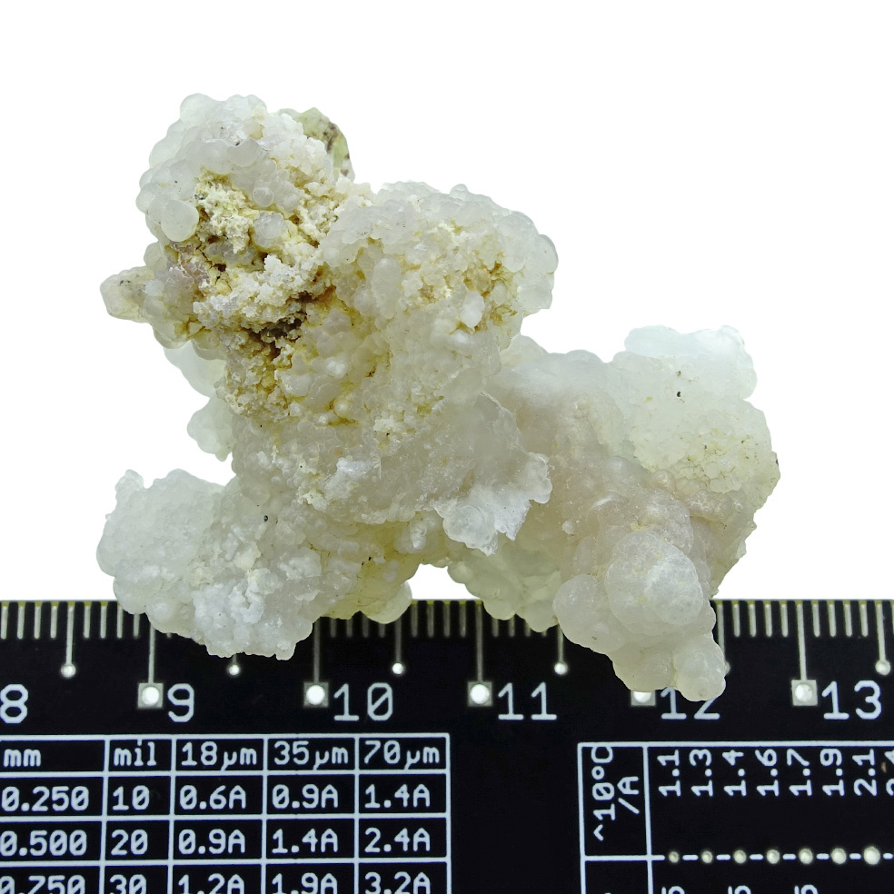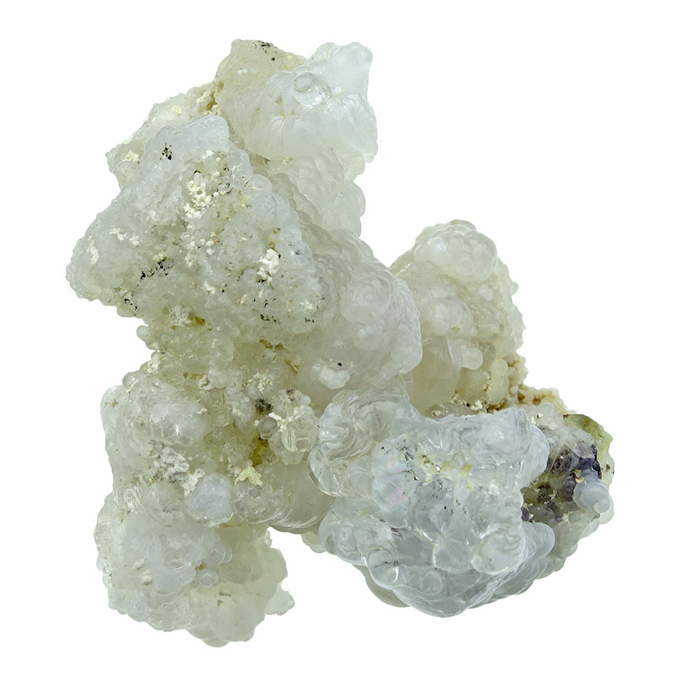 Hyalit-Opal ist ein Gemisch aus Wasser und Siliziumdioxid, das sich im Laufe von Tausenden von Jahren als Ablagerung gebildet hat. Dabei verdampfte das Wasser und das Silizium blieb als getrocknete Tröpfchen zurück. Das normalerweise durchscheinende Mineral ist mit einer minimalen Menge Uran kontaminiert und leuchtet unter UV-Licht hellgrün.