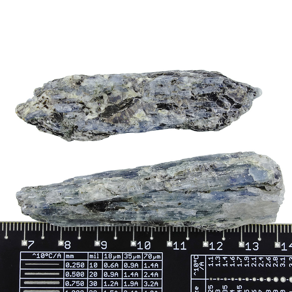 Kyanit ist ein Aluminiumsilikatmineral mit gebänderten Blattkristallen, die transparent oder durchscheinend mit perlmuttartigem Glanz sein können. Kyanit ist bekannt für seine blaue Farbe, kommt aber auch in Weiß, Indigo, Grün und Schwarz vor.