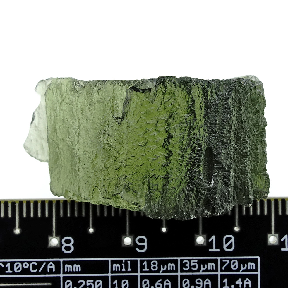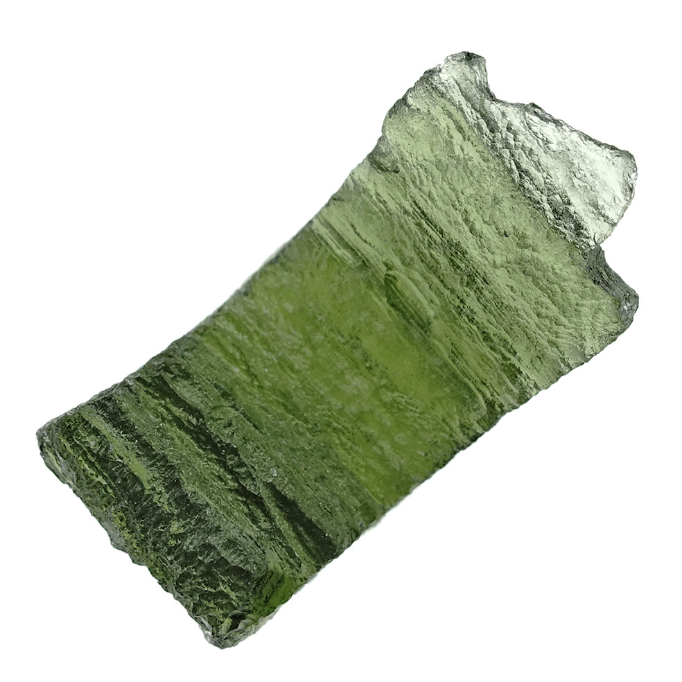 Die hohe Aufprallgeschwindigkeit von 20 Kilometern pro Sekunde setzte eine enorme Energiemenge frei, vergleichbar mit der 1,8 Millionenfachen der Atombombe, die auf Hirochima fiel. Erdgestein und Sand in Kombination mit dem Meteoriten wurde zu Glas eingeschmolzen. Dieses Glas wurde durch die Wucht des Aufpralls über eine riesige Distanz verteilt. Diese „Glastropfen“ werden auch Tektite genannt. Moldavit ist der einzige Tektit der Welt mit einer wunderschönen grünen Farbe und macht ihn einzigartig in seiner Art! Diese Stücke wurden gefunden in: Chlum nad Malsi, Böhmen, Tschechische Republik.