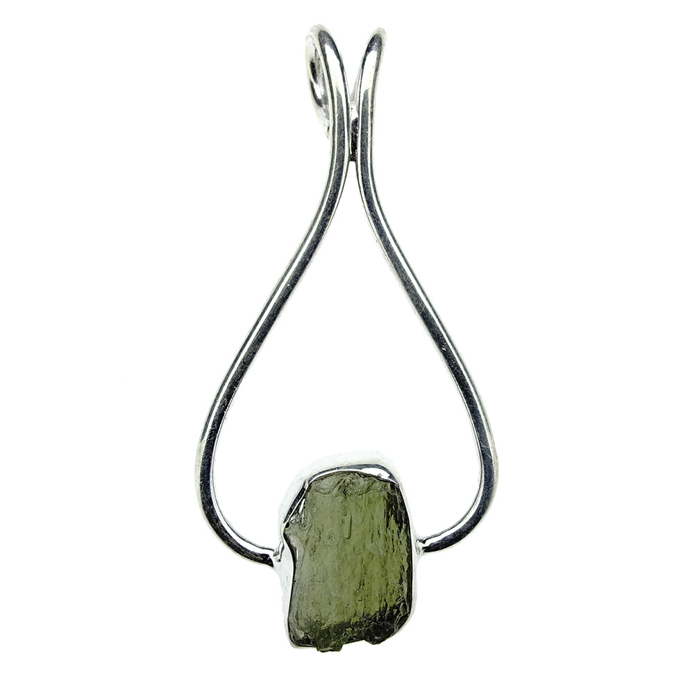 Handgefertigter Moldavit-Anhänger aus der Sculpted by Nature-Linie.