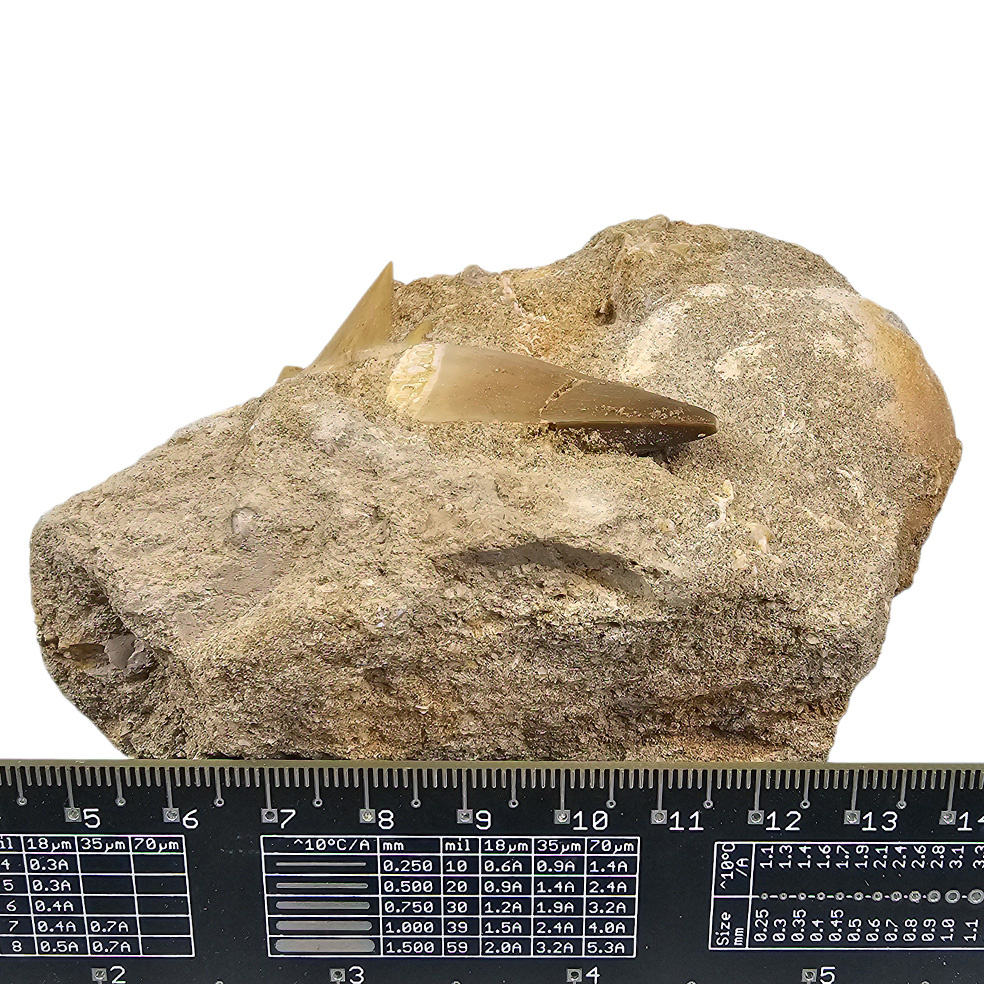 Der Mosasaurus ist ein Saurier, der in der späten Kreidezeit (vor 71,3 bis 65,4 Millionen Jahren) die Meere bewohnte. Die ersten fossilen Überreste des Mosasaurus wurden in der Nähe von Maastricht gefunden. Der Mosasaurus ist daher nach der Maas benannt und wird auf Niederländisch auch Maas-Eidechse genannt. Dieser Zahn wurde in den Phosphatminen in Marokko gefunden.