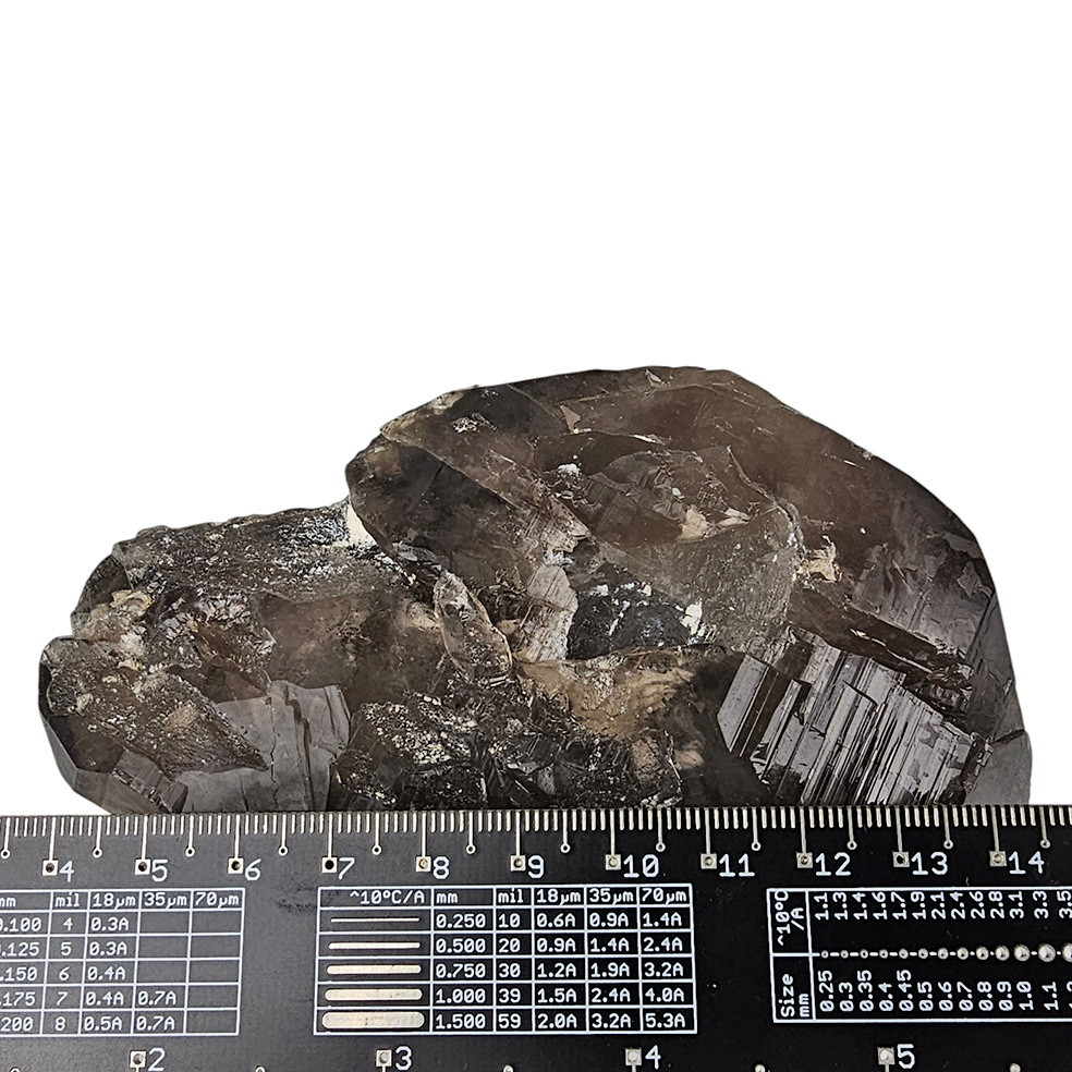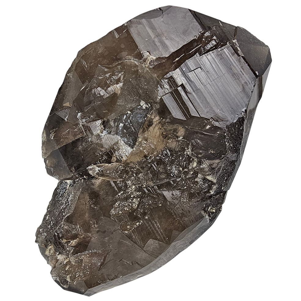 Diese besonderen Rauchquarzkristalle aus Mt. Malosa zeichnen sich durch ihre tiefdunkle Farbe und das Vorhandensein von Aegirin aus. Die dunkle Farbe ist auf das Vorhandensein von Aluminium im Kristall zurückzuführen, das den Kristallen, nachdem sie ionisierender Strahlung ausgesetzt wurden, ihren charakteristischen Farbton verleiht. Dieser Prozess kann Tausende von Jahren dauern.