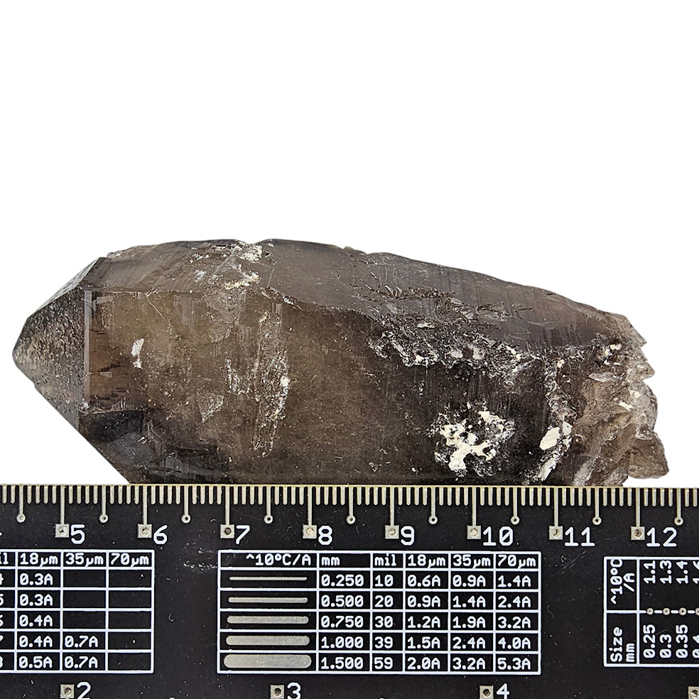 Dieser tiefdunkle Rauchquarzkristall stammt vom Mount Malosa in Zomba, Malawi. Der Kristall hat eine natürliche, intensive dunkle Farbe und enthält Spuren von Aegirin, einem Kristall, der für seine starken erdenden Eigenschaften bekannt ist.