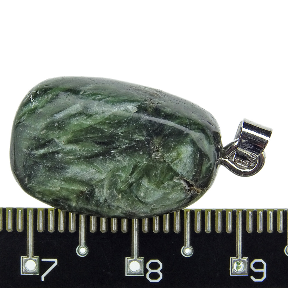Seraphinite hat seinen Namen vom silbernen Federmuster im Stein, das Ähnlichkeit mit Engelsflügeln zeigt. Die Seraphim gehören zu den höchsten Rängen der Engelsorden. Es ist ein beliebter Meditationsstein.