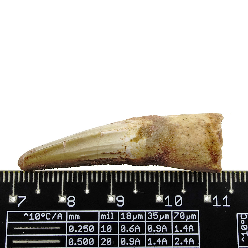 Feine Zahn des größten Landraubtier, das je gelebt hat. Der Spinosaurus war 15 Meter lang! Das ist drei Meter länger als die T-rex. Neuere Forschungen haben gezeigt, dass der Spinosaurus ein guter Schwimmer war, die auch den großen Kamm auf dem Rücken des Tieres erklären würde.