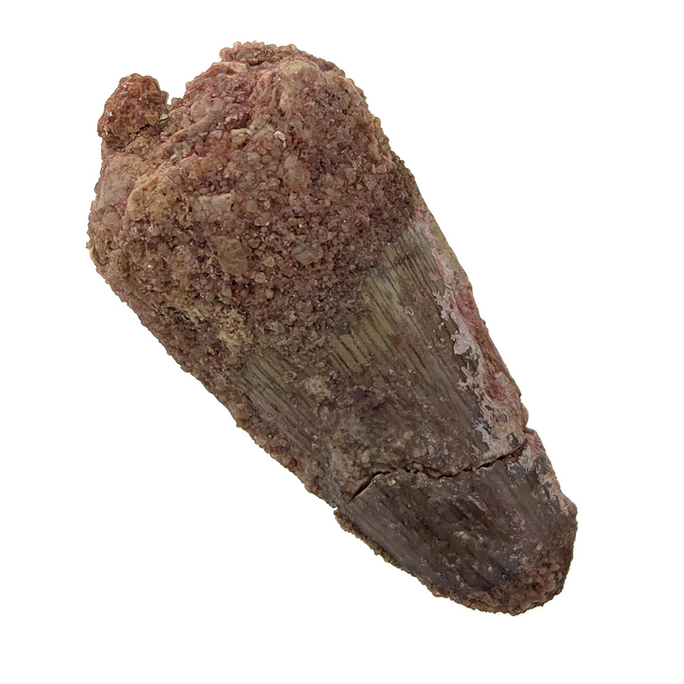 Dieser wunderschöne Spinosaurus-Zahn stammt von einem der beeindruckendsten Raubsaurier, die jemals auf der Erde gelebt haben. Spinosaurus aegyptiacus erreichte schätzungsweise eine Länge von bis zu 15 Metern. Damit war er sogar größer als der berühmte Tyrannosaurus rex. Ein markantes Merkmal dieses Dinosauriers war der große Rückenkamm, der wahrscheinlich durch stark verlängerte Wirbel gebildet wurde.