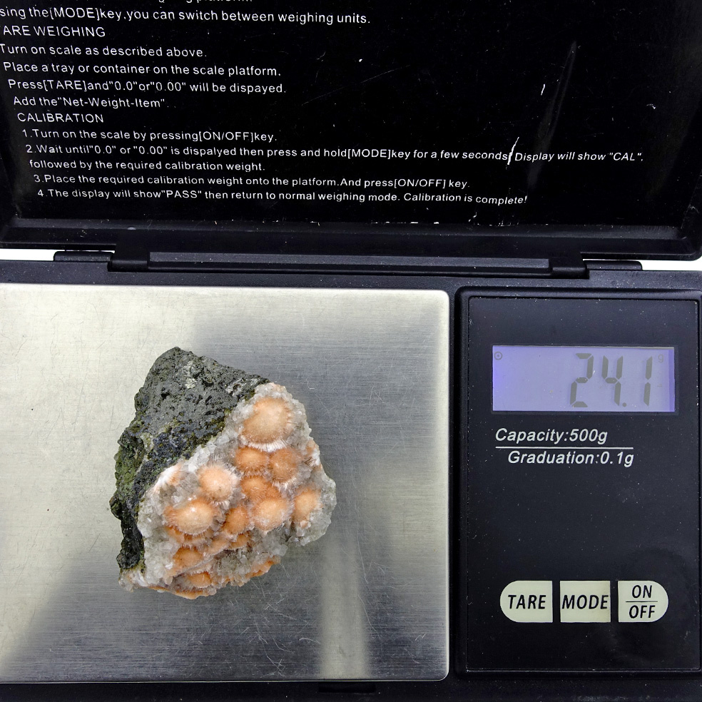 Unsere Thomsonit-Kollektion stammt aus der Region Nashik in Maharashtra, Indien. Dieser Ort ist bekannt für seine hohe Qualität und auffallende orangefarbene Färbung. Das Mineral besteht aus markanten kugelförmigen Clustern von Thomsonit, kombiniert mit sehr feinem Mesolith, das eine weiße haarähnliche Struktur bildet.
