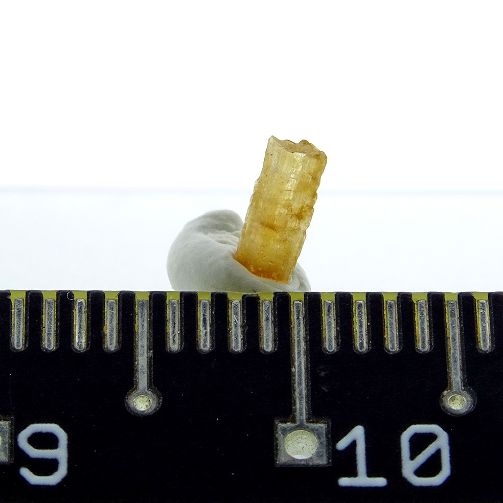 Bitte beachten Sie, dass dieser besondere Kristall sehr klein ist! Schauen Sie sich das Foto mit dem Lineal genau an. Der Vayrynenit wird in einer Edelsteinbox mit den Maßen 2,5 x 2,5 cm geliefert.