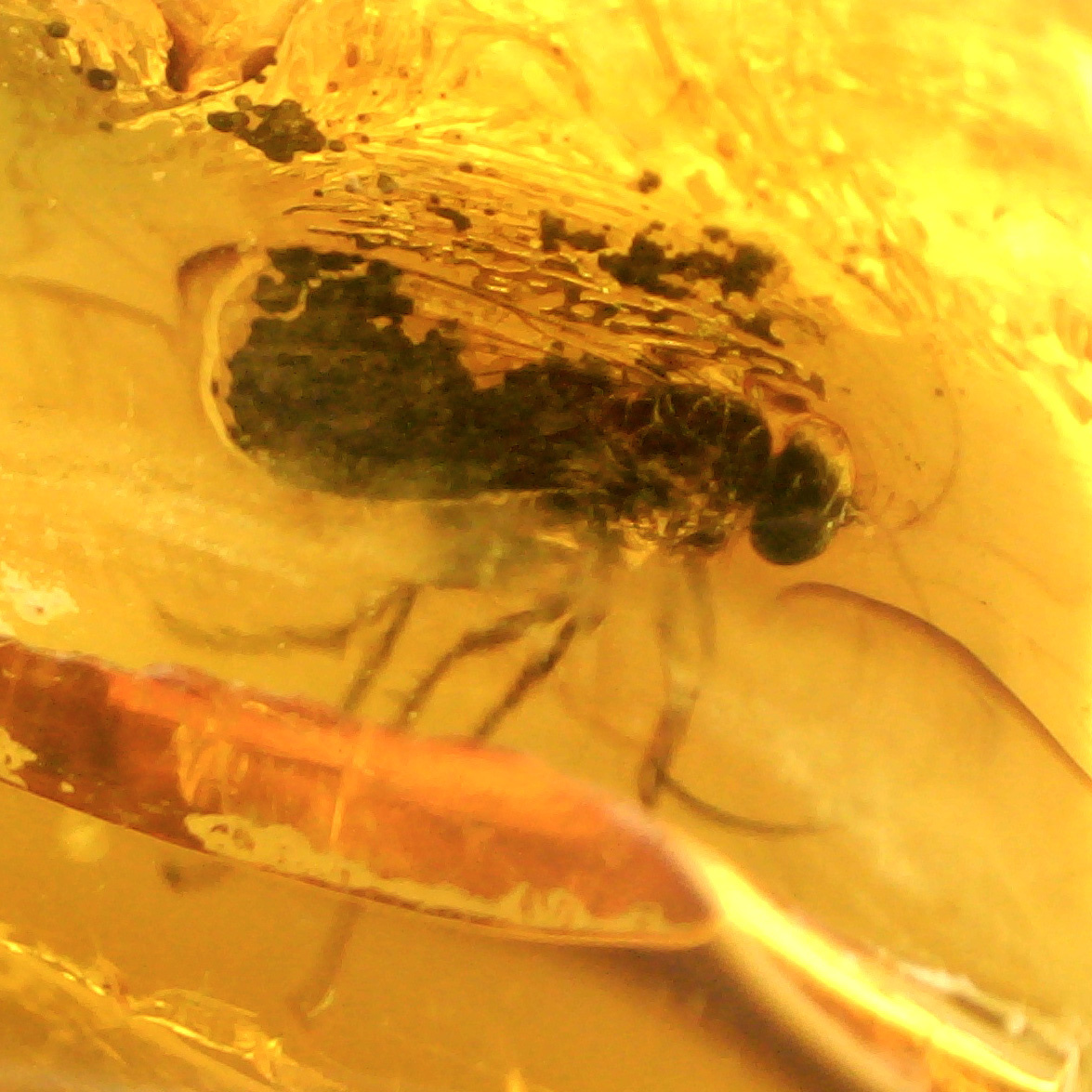 Baltic amber is fossilized resin from coniferous trees in the Scandinavian region, approximately 44 million years old. At that time, a relatively mild climate prevailed, and coniferous forests stretched far into the Scandinavian region, with trees up to 40 meters tall. Insects encased in resin are exceptionally well preserved and have taught science a great deal about the evolutionary process between these fossil specimens and our modern-day insects.