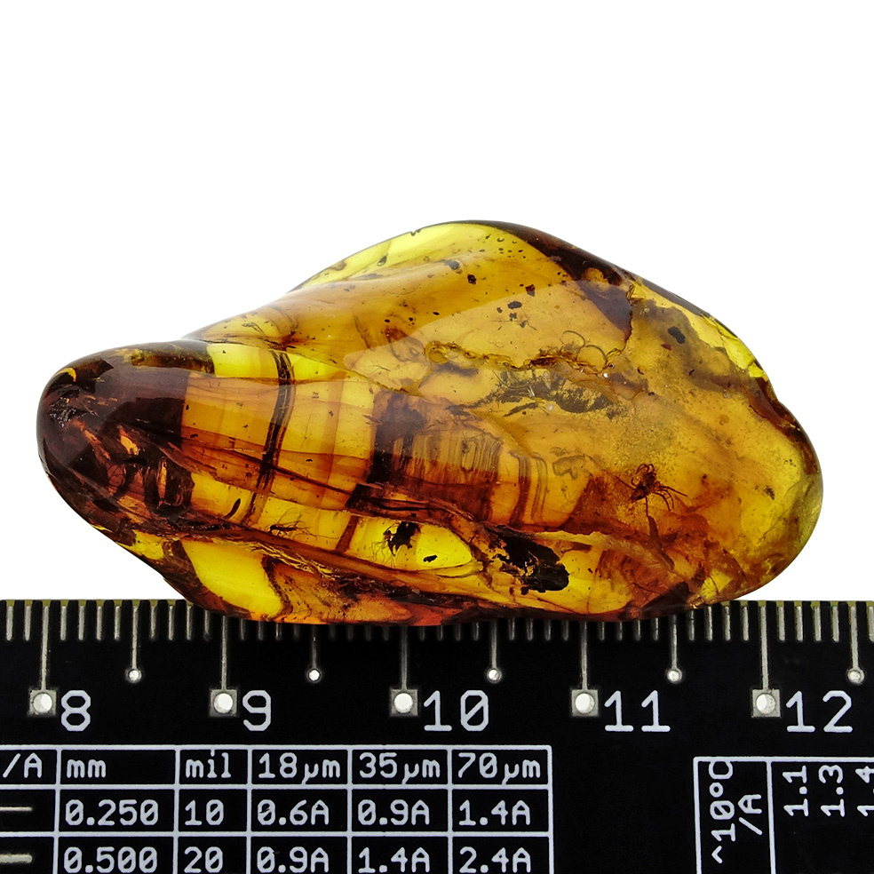 Baltic amber is fossilized resin from coniferous trees in the Scandinavian region, approximately 44 million years old. At that time, a relatively mild climate prevailed, and coniferous forests stretched far into the Scandinavian region, with trees up to 40 meters tall. Insects encased in resin are exceptionally well preserved and have taught science a great deal about the evolutionary process between these fossil specimens and our modern-day insects.