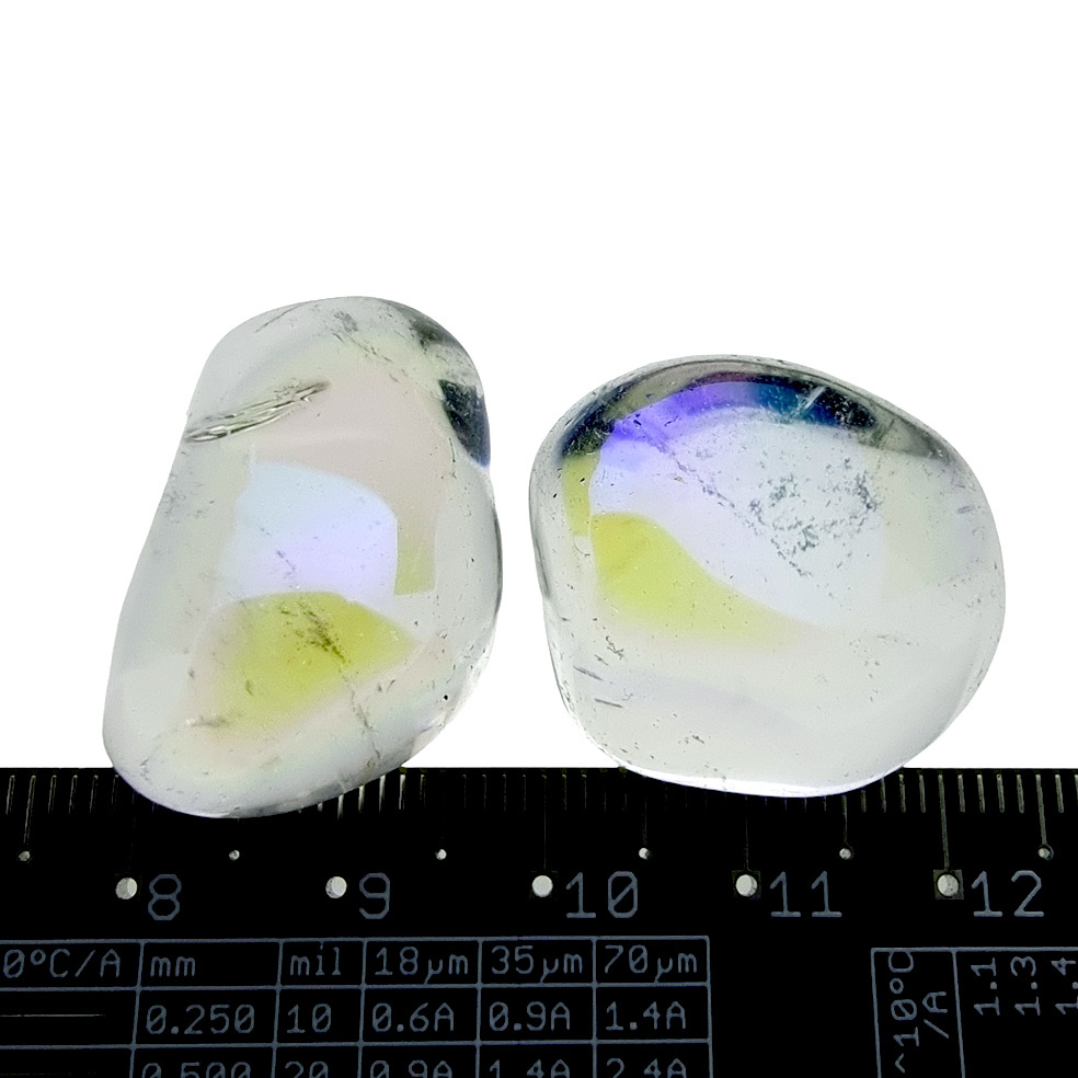 Angel aura is quartz that has been treated with a platinum and silver infusion. It works as an aura cleanser with a powerful vibration.