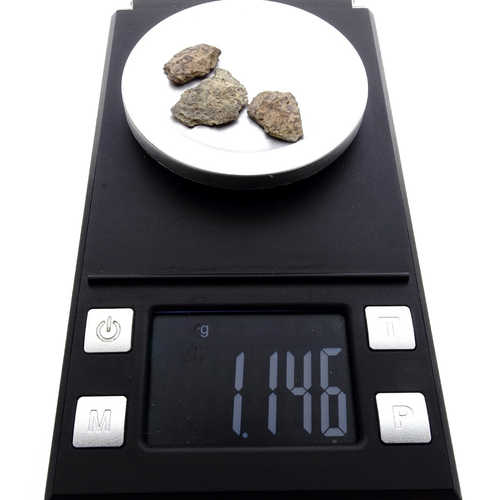 A total of 2.2 KG of the Calate 002 was found on 26 October 2016, most of it in smaller fragmented pieces. The meteorite is classified as an L6 chondroit with an average shock phase of S5.