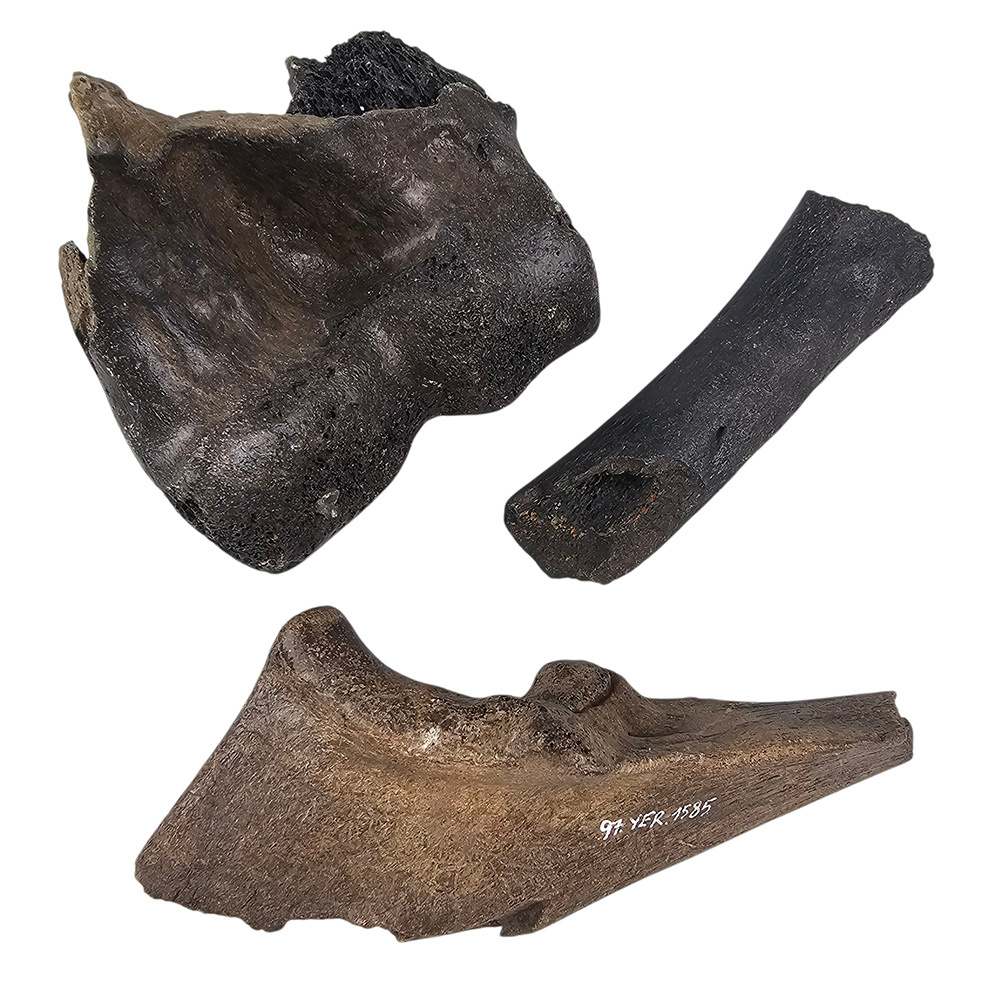 This set consists of three bones from different mammals that lived in the Dutch landscape during the Ice Age. They come from an old collection. Some of the bones still bear a code; unfortunately, the list with the corresponding information has been lost. We left the codes in place, just in case they are ever recovered.