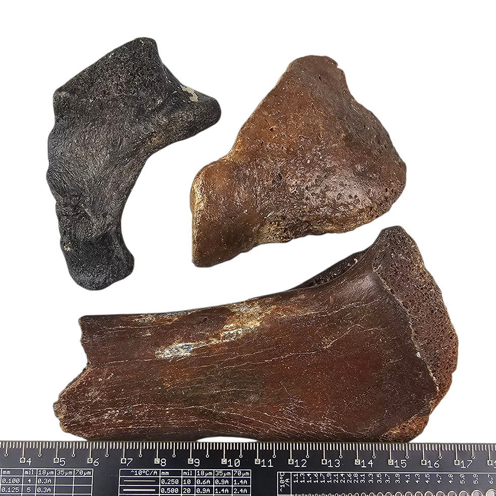 This set consists of three bones from different mammals that lived in the Dutch landscape during the Ice Age. They come from an old collection. Some of the bones still bear a code; unfortunately, the list with the corresponding information has been lost. We left the codes in place, just in case they are ever recovered.