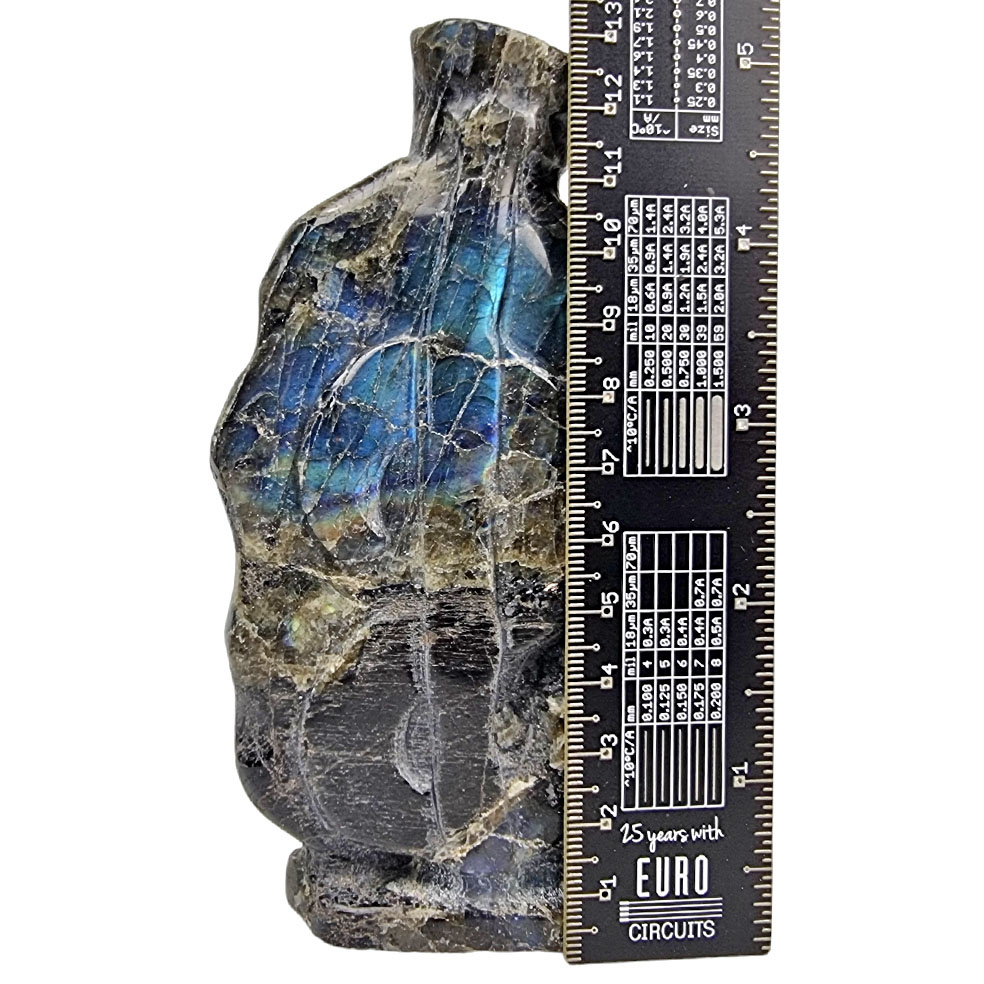Labradorite was first discovered in 1780 on the Labrador Peninsula in Canada. It is a gray stone that shows beautiful color nuances in yellow, green and blue when you turn it. This play of colors is caused by an internal lamella structure, often in combination with small specular inclusions of rutile and magnetite. This stone belongs to the feldspar family.