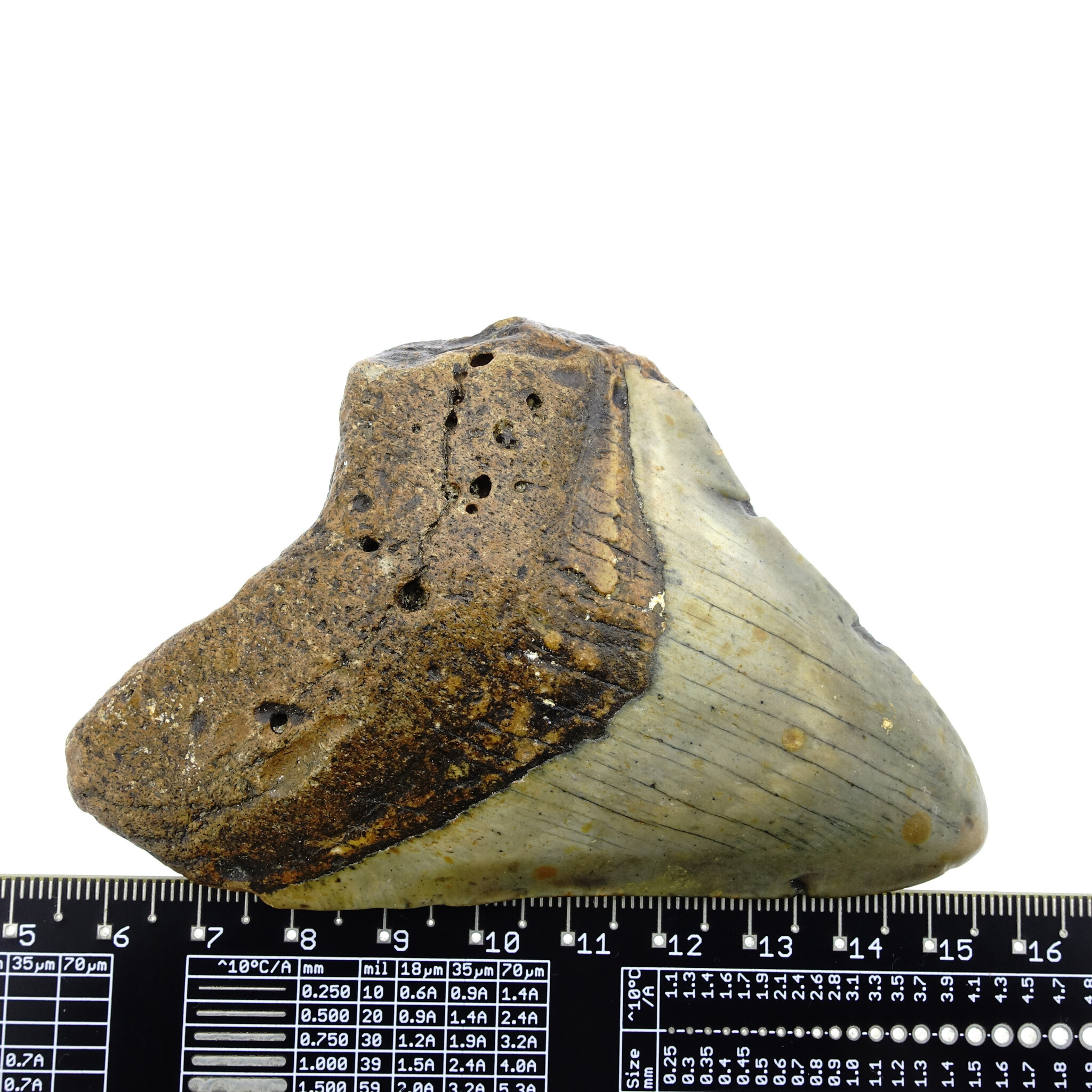 Very beautiful fossil shark tooth is from the extinct Megalodon shark.
