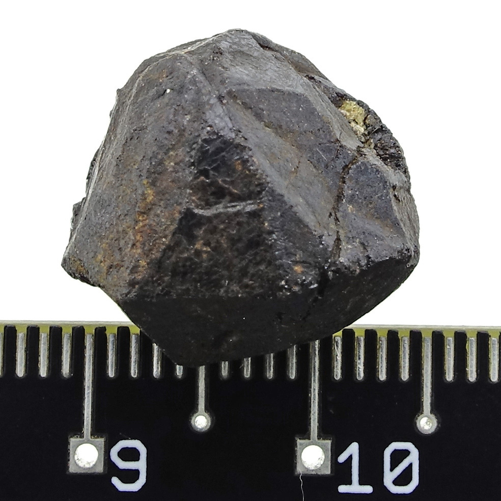 Melanite is a black garnet from the andradite family. The black color is caused by a high titanium content. Melanite is therefore also known as 'titanium andradite'. The crystals are non-transparent and black in color, although yellow or green accents may occur in the crystal. Although andradite is a common mineral , the black variety is rather rare.