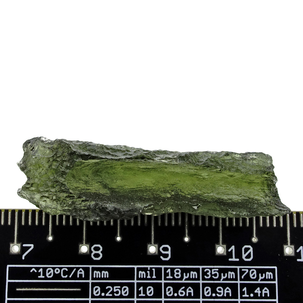 The high impact speed of 20 kilometers per second released an enormous amount of energy, comparable to 1.8 million times that of the atomic bomb that fell on Hirochima. Earthly rock and sand in combination with the meteorite was melted down into glass. This glass was spread over a huge distance by the force of the impact. These 'glass drops' are also called tektites. Moldavite is the only tektite in the world with a beautiful green color and makes it unique in its kind! These pieces were found in: Chlum nad Malsi, Bohemia, Czech Republic.