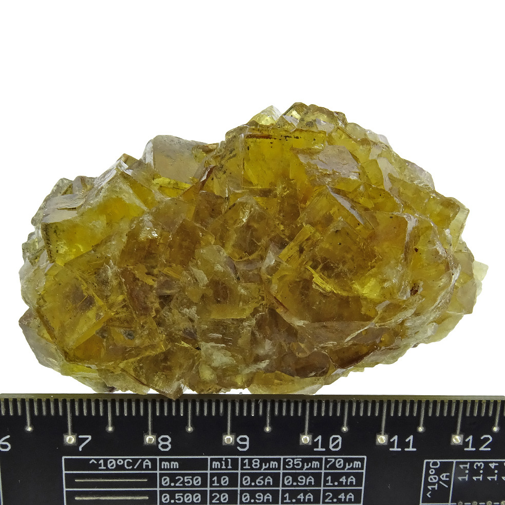 Yellow Moscona fluorite from Asturias, Spain. Beautiful cubic crystals on limestone or barite. Rare, clear, and intensely colored – a valuable addition to any mineral collection.