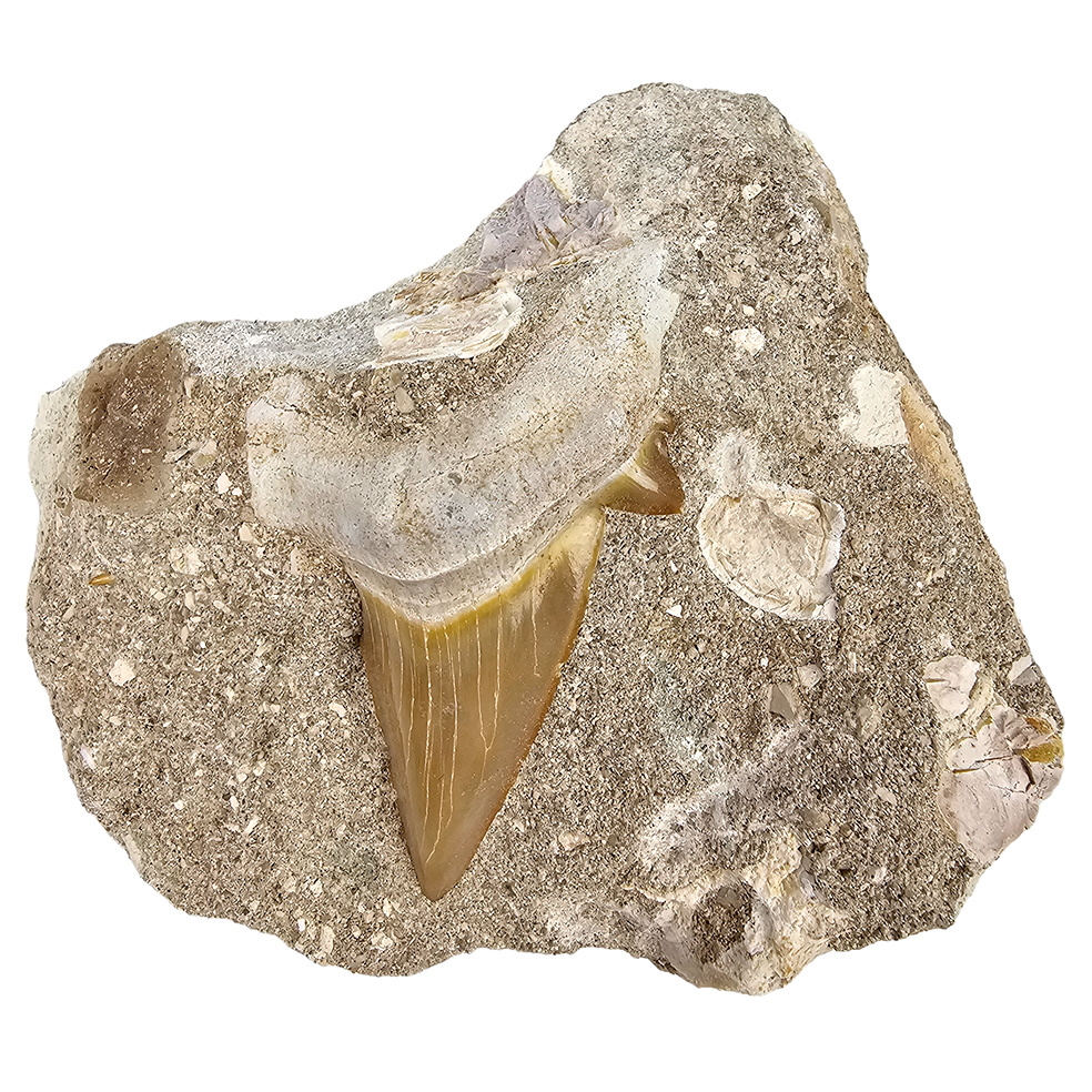 Otodus obliquus was one of the earliest mackerel sharks. Their teeth are known for their broad triangular crown and smaller side teeth. This shark ruled the oceans during the Early Eocene and Paleocene epochs (about 60-45 million years ago).