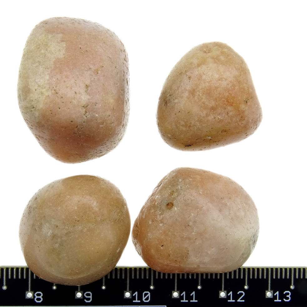 Pink amethyst tumbled stones from Brazil. The hematite compounds in the chalcedony provide the pink colour.