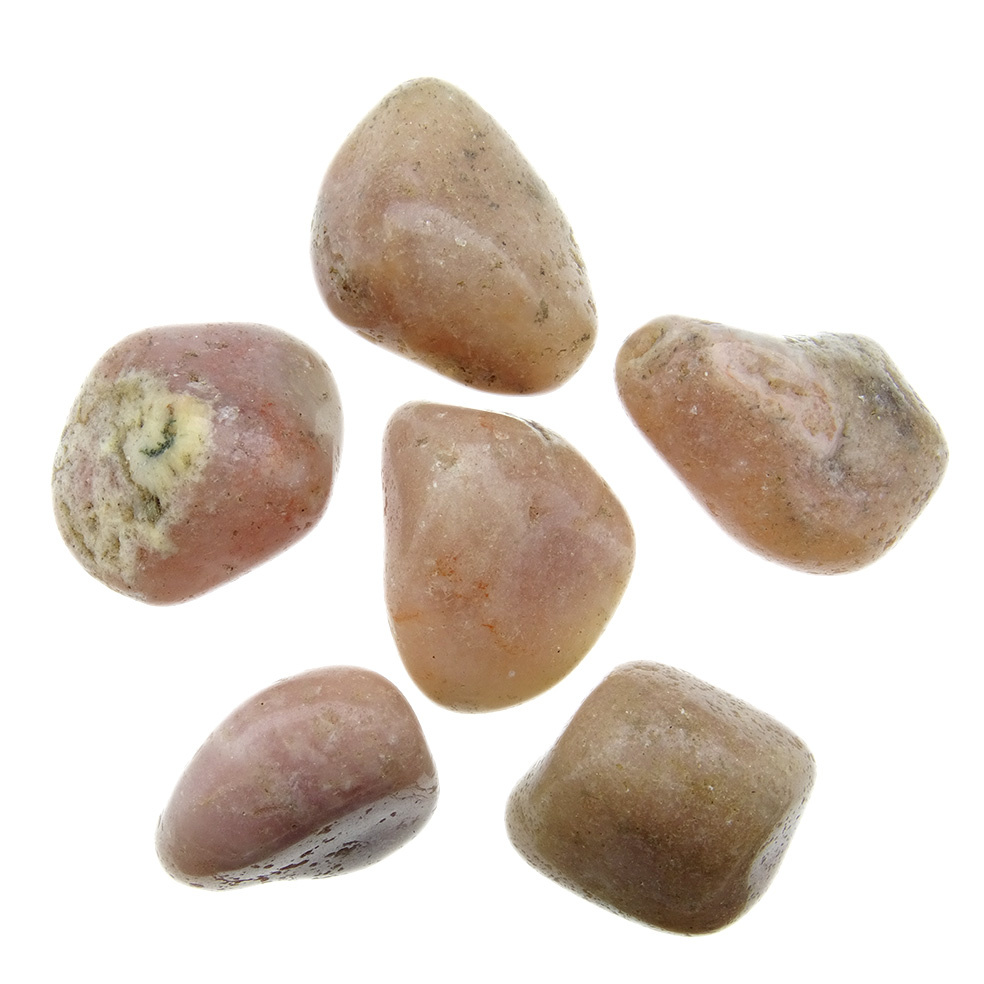Pink amethyst tumbled stones from Brazil. The hematite compounds in the chalcedony provide the pink colour.