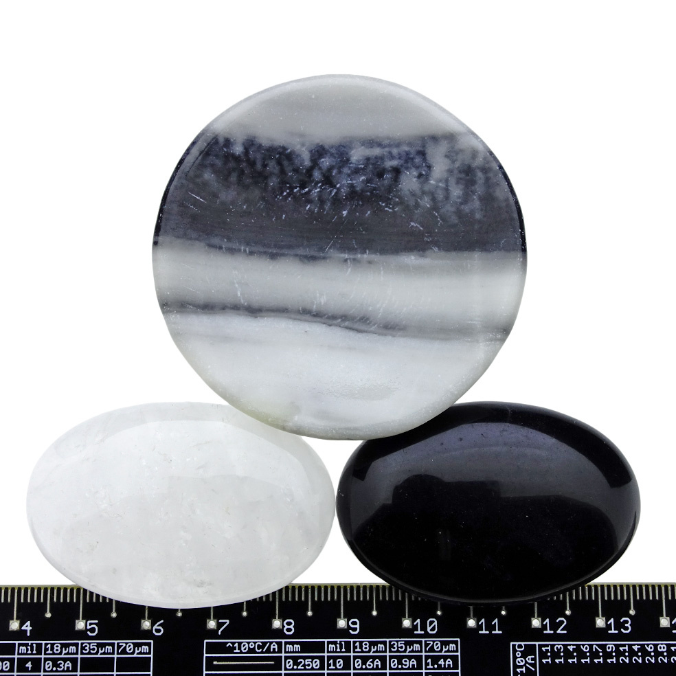 The bowl has a diameter of 5.5 cm. The hand stones are 4 cm.