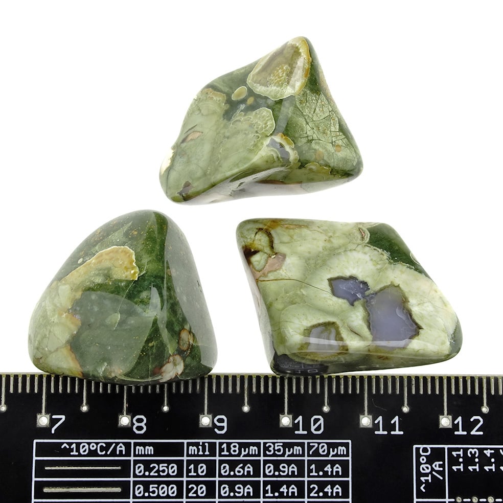 Rhyolite is a coagulation rock and is pushed to the surface by volcanic activity. It occurs when granite magma quietly steams out of a volcano and the lava cools down quickly. When the lava cools down so quickly that no crystals can be formed, we speak of volcanic glass, better known as obsidian. When the magma cools down a bit slower, rhyolite is formed.This bag contains 950 grams of stones, most of which measure between 2 and 3 cm.