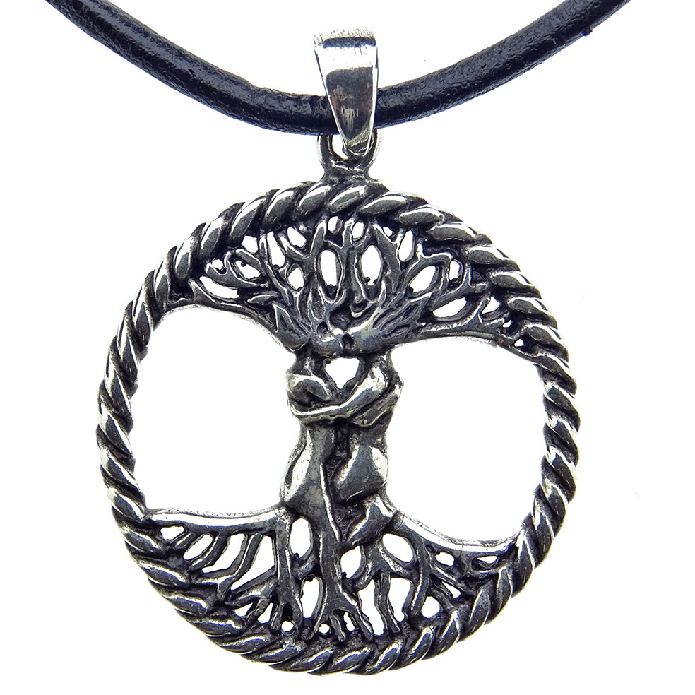 Beautiful silver pendant of a tree of life with Adam and Eve. The pendant has a size of 2.7 cm and weighs about 4.8 grams. This pendant hangs on a leather cord
