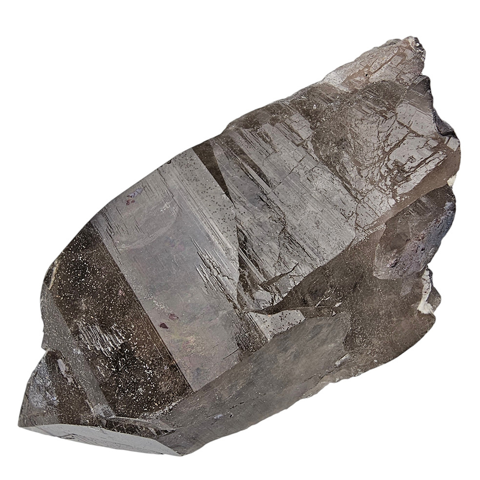 Deep dark smoky quartz crystal sourced from Mount Malosa in Zomba, Malawi. The crystal has a natural intense dark colour and contains traces of aegirine, a crystal known for its strong grounding properties.