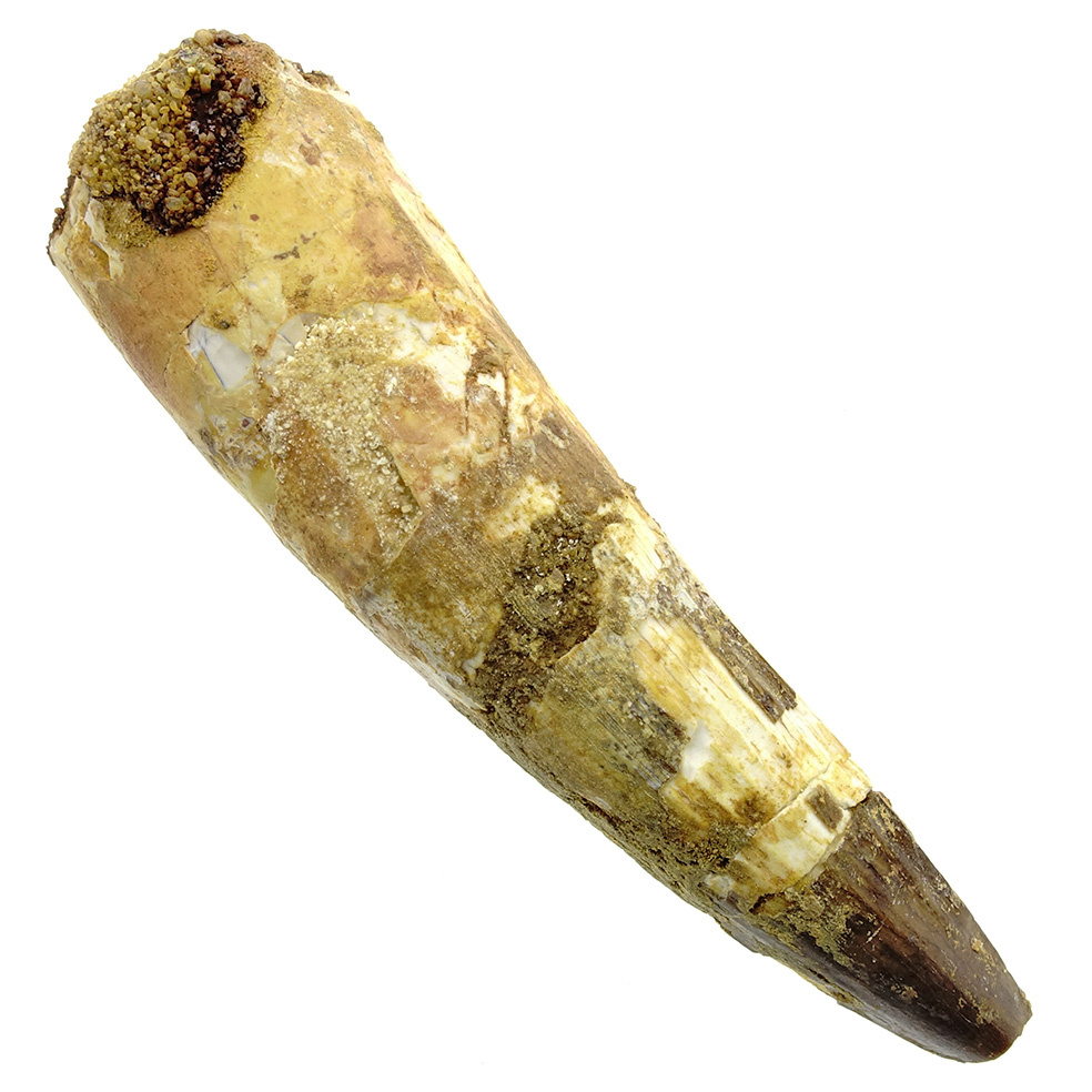Nice tooth of the largest land predator that ever lived. The spinosaurus could reach a length of 15 meters! That is 3 meters longer than the T-rex. Recent research has shown that the Spinosaurus was also an excellent swimmer, which would also explain the huge ridge on the back of the animal.
