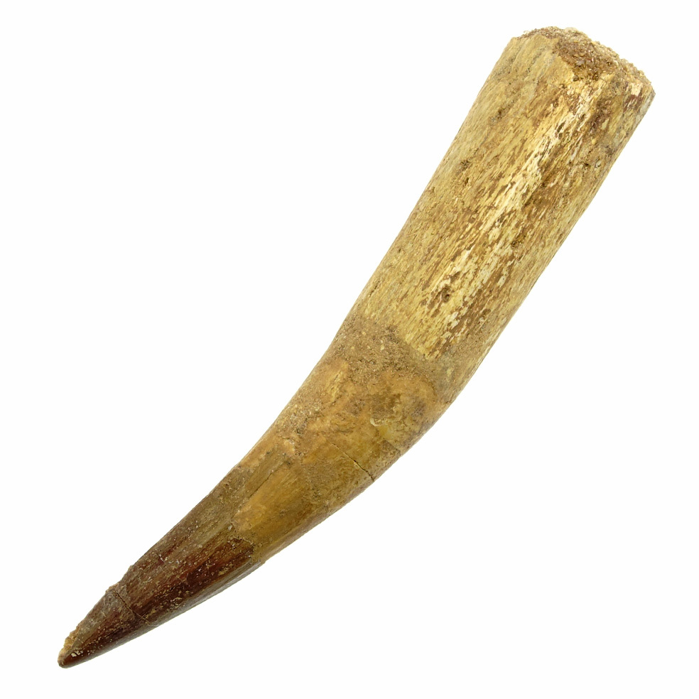 Beautiful tooth of the largest land predator that ever lived. The spinosaurus could grow up to 15 meters in length! That is 3 meters longer than the T-rex. Recent research has shown that Spinosaurus was also a great swimmer, which would also explain the huge crest on the animal's back.