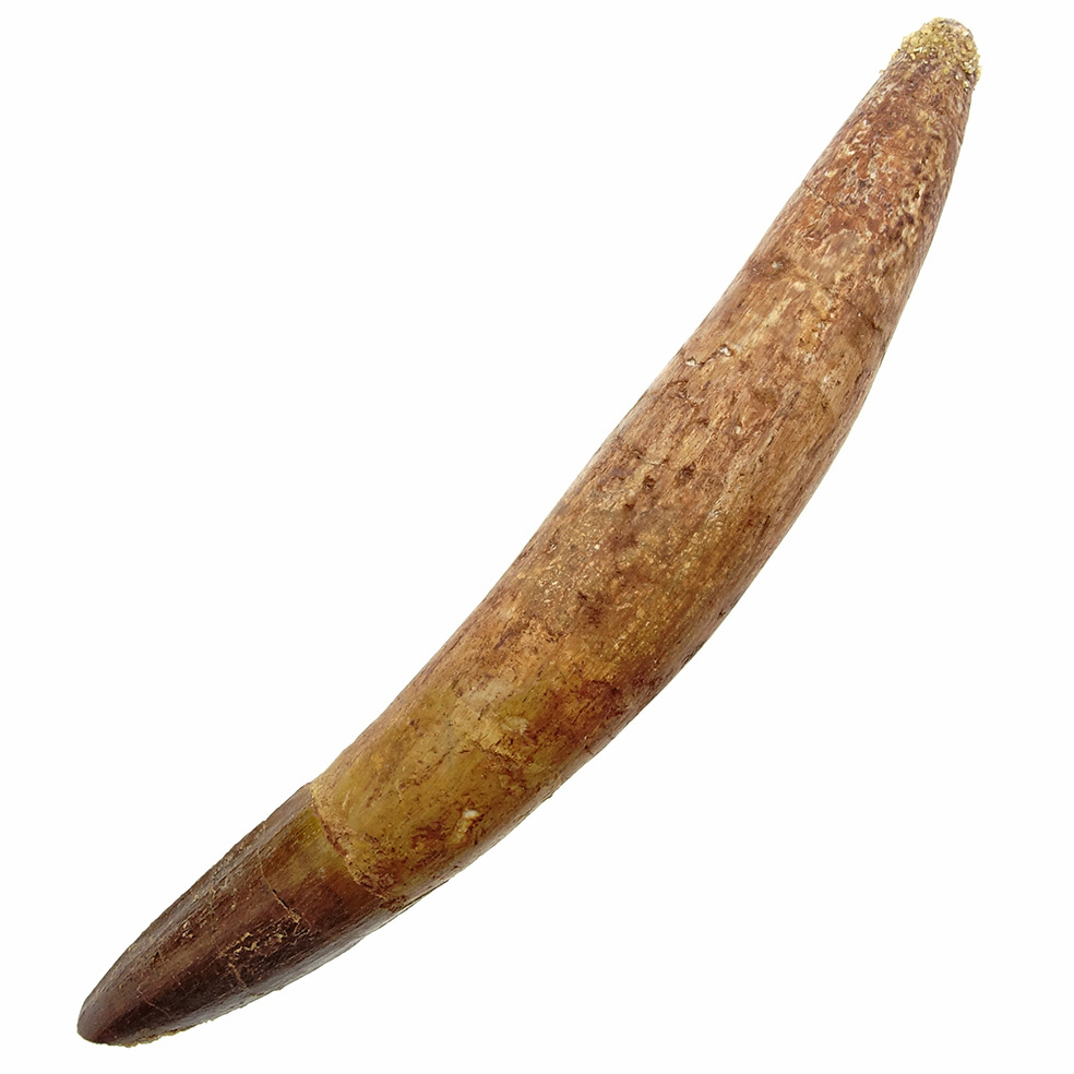 Beautiful tooth of the largest land predator that ever lived. The spinosaurus could grow up to 15 meters in length! That is 3 meters longer than the T-rex. Recent research has shown that Spinosaurus was also a great swimmer, which would also explain the huge crest on the animal's back.