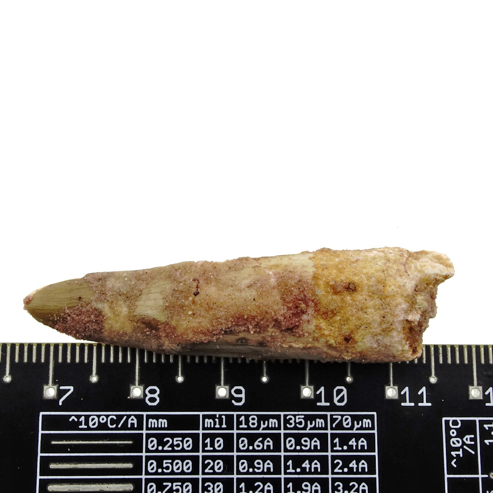 Nice tooth of the largest land predator that ever lived. The spinosaurus could reach a length of 15 meters! That is 3 meters longer than the T-rex. Recent research has shown that the Spinosaurus was also an excellent swimmer, which would also explain the huge ridge on the back of the animal.