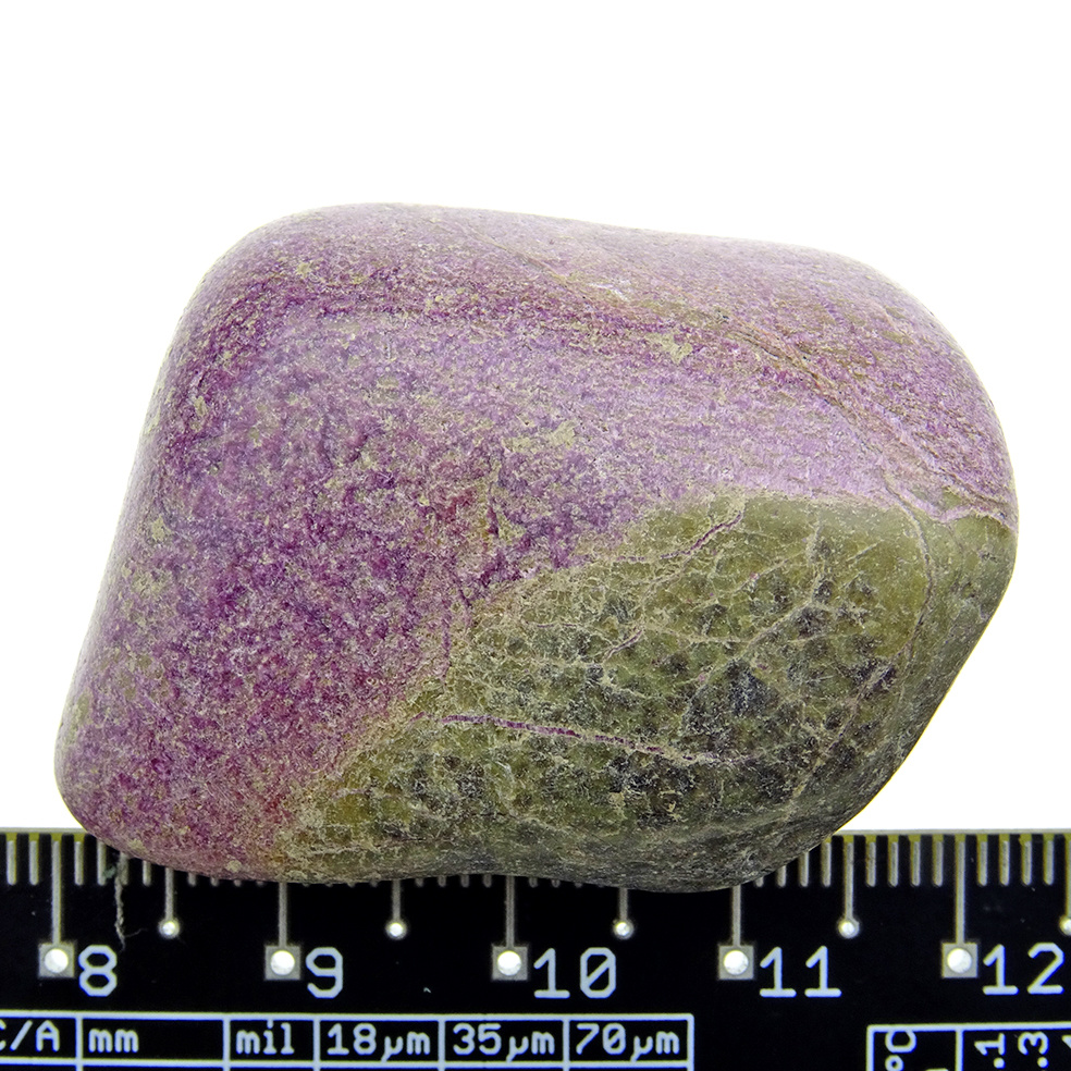 The mineral stichtite is a hydrated magnesium chromium carbonate, and is mainly found in igneous and metamorphic rocks. It is formed as an alteration product of chromite-containing serpentine and is found in various parts of the world, including Australia, Brazil, Canada, India, Morocco, Russia, Scotland and Sweden. Stichtite is soft with a Mohs hardness of 1-1/2 to 2 and therefore needs careful handling. You can clean it with a soft, dry cloth or warm soapy water. Avoid using harsh cleaners with bleach and acid. Also, do not use ultrasonic cleaners or steamers.