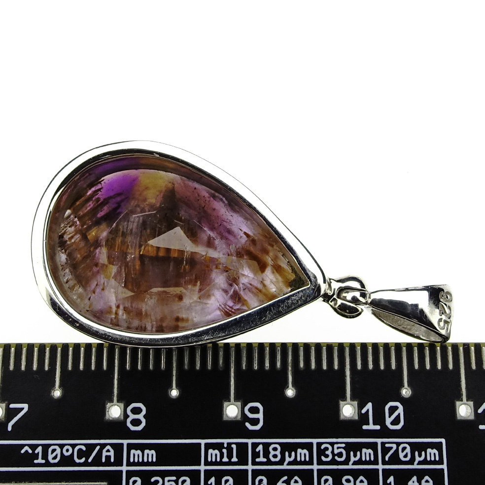 Super Seven, a combination of amethyst, smoky quartz, rutile, lepidocrosite, cacoxenite and goethite in rock crystal. Promotes personal growth and spiritual development.