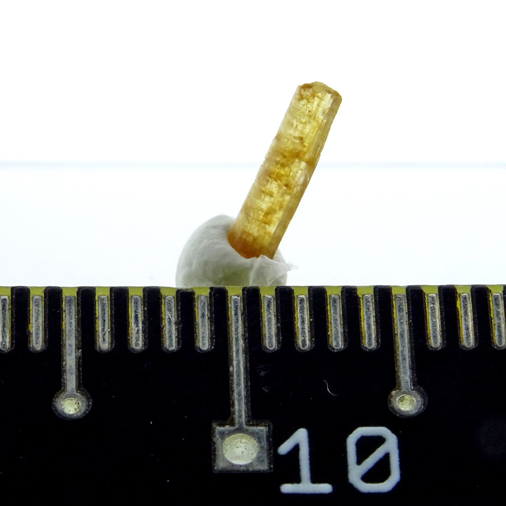 Please note that this particular crystal is very small! Look carefully at the photo with the ruler. The Vayrynenite is shipped in a gemstone box measuring 2.5 x 2.5 cm