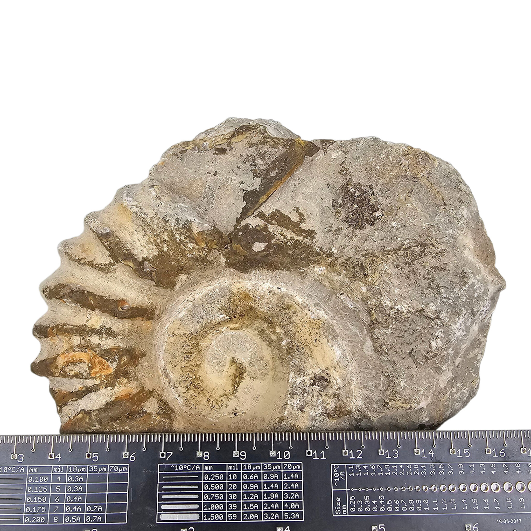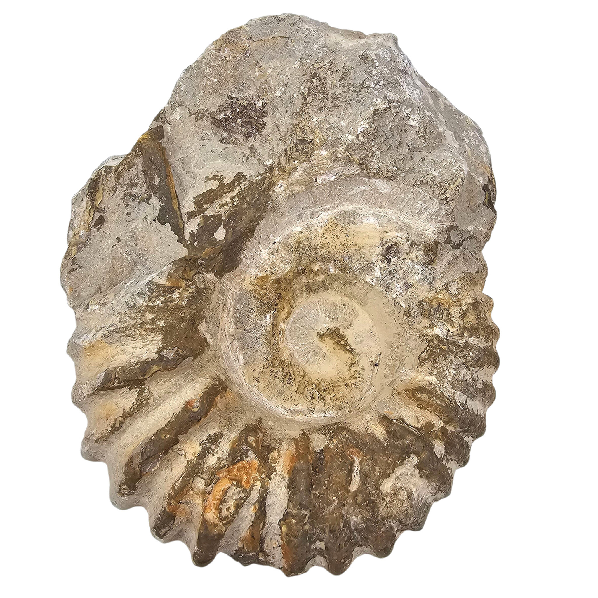 Versteende ammoniet uit Marokko, afkomstig uit de Krijtperiode. Deze spiraalvormige fossielen zijn miljoenen jaren oud en geliefd bij verzamelaars en liefhebbers van natuurlijke historie.
