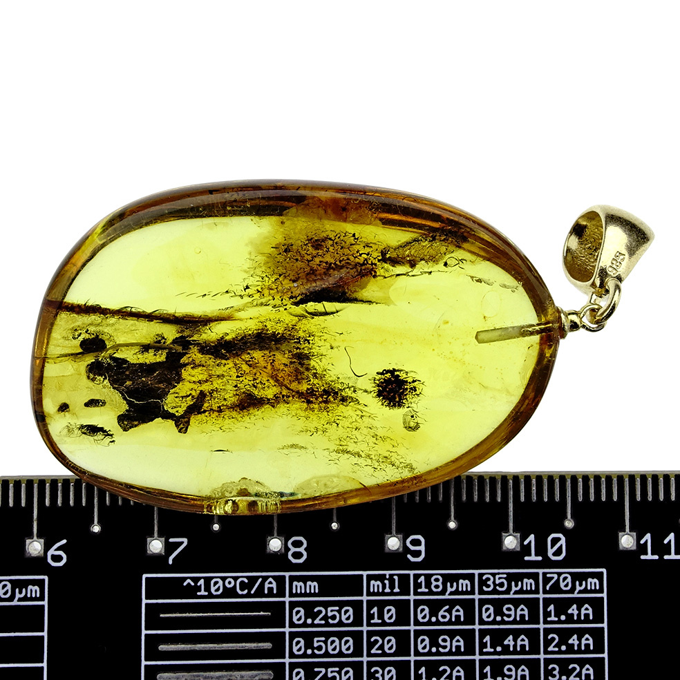 Hanger van Baltisch barnsteen. 44 miljoen jaar oud. Met gouden oogje van verguld zilver.