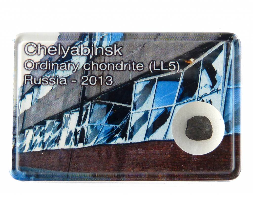 De Russische meteoriet is een Chondriet ofwel steen meteoriet. We hebben verschillende display doosjes gemaakt met afbeeldingen van de meteorietinslag zoals deze destijds ook op het nieuws te zien waren. Kies uw eigen afbeelding met meteoriet of verzamel ze allemaal!