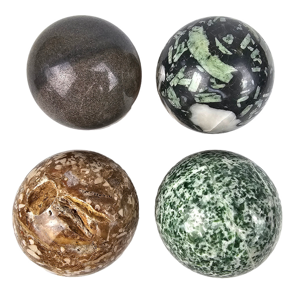 Deze edelsteenbollen set bestaat uit 4 bollen: porfiriet, boomagaat, zwarte jaspis en aragoniet. De afmeting van de bollen ligt tussen 5,9 en 6,3 cm. Alle bollen worden geleverd met een gratis natuursteen houder!